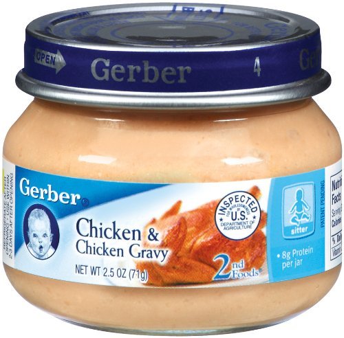 - CERTAIN CONTENT Baby / Child Gerber 2nd Foods Meats Recommended Babies Meals 2.5-Ounce (Pack Of 12) - Chicken And Chicken Gravy Infant THAT APPEARS ON THIS Â COMES FROM AMAZON EU. THIS CONTENT IS PROVIDED AND IS SUBJECT TO CHANGE OR REMOVAL AT ANY TIME.
