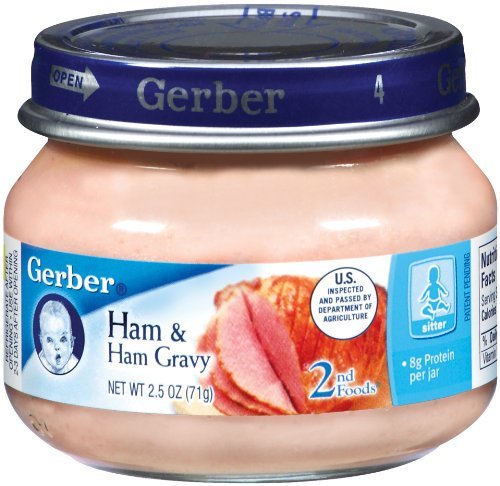 - CERTAIN CONTENT Baby / Child Gerber 2nd Foods Meats Recommended Babies Meals 2.5-Ounce (Pack Of 12) - Ham And Ham Gravy Infant THAT APPEARS ON THIS Â COMES FROM AMAZON EU. THIS CONTENT IS PROVIDED AND IS SUBJECT TO CHANGE OR REMOVAL AT ANY TIME.