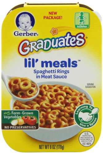 - CERTAIN CONTENT Gerber Graduates Lil' Meals, Spaghetti Rings in Meat Sauce, 6 Ounce (Pack of 6) THAT APPEARS ON THIS Â COMES FROM AMAZON EU. THIS CONTENT IS PROVIDED AND IS SUBJECT TO CHANGE OR REMOVAL AT ANY TIME.