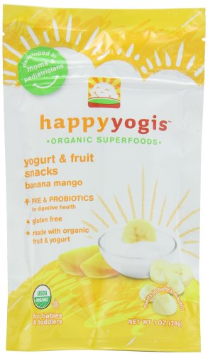 - CERTAIN CONTENT Happy Yogis Organic Yogurt Snacks for Babies and Toddlers, Banana Mango, 1-Ounce Pouches (Pack of 8) THAT APPEARS ON THIS Â COMES FROM AMAZON EU. THIS CONTENT IS PROVIDED AND IS SUBJECT TO CHANGE OR REMOVAL AT ANY TIME.