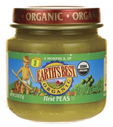 - CERTAIN CONTENT Earth's Best Organic Baby Food Stage 1 - Ages 4 Months and Up First Peas -- 2.5 oz THAT APPEARS ON THIS Â COMES FROM AMAZON EU. THIS CONTENT IS PROVIDED AND IS SUBJECT TO CHANGE OR REMOVAL AT ANY TIME.