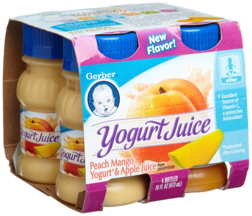 - CERTAIN CONTENT Gerber Yogurt Juice, Peach Mango Yogurt & Apple Juice, 4-Ounce Bottles (Pack of 6) THAT APPEARS ON THIS Â COMES FROM AMAZON EU. THIS CONTENT IS PROVIDED AND IS SUBJECT TO CHANGE OR REMOVAL AT ANY TIME.