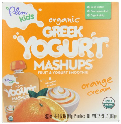 - CERTAIN CONTENT Plum Kids Organic Greek Yogurt Mashups, Orange Cream, 4-Count (Pack of 6) THAT APPEARS ON THIS Â COMES FROM AMAZON EU. THIS CONTENT IS PROVIDED AND IS SUBJECT TO CHANGE OR REMOVAL AT ANY TIME.
